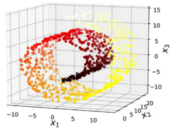 많은 경우 스위스 롤 데이터셋처럼 부분 공간이 뒤틀려있거나 휘어 있기도 합니다.