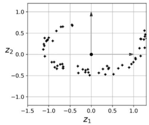 많은 차원 축소 알고리즘이 훈련 샘플이 놓여 있는 매니폴드를 모델링하는 식으로 작동합니다.