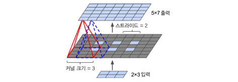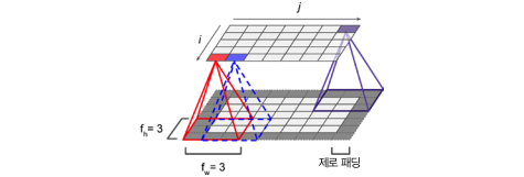 아래 그림처럼 높이와 너비를 이전 층과 같게 하기 위해 입력의 주위에 0을 추가하는 것이 일반적입니다.