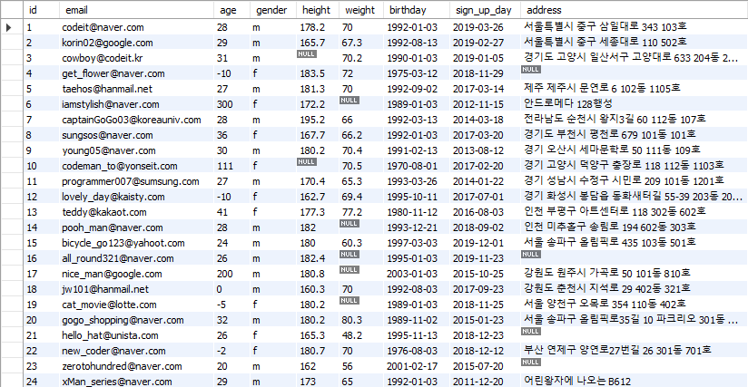 column에 보면 birthday나 sign_up_day처럼 날짜 관련 정보를 담고 있는 column이 있는데, 이런 column은 Datatype을 DATE로 설정해주면 이후 날짜 관련 계산에서 편리하게 이용할 수 있습니다.